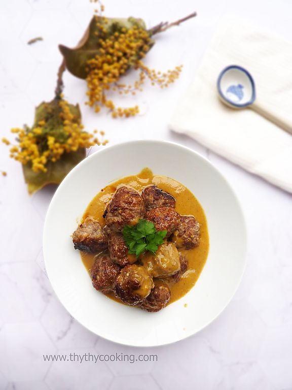 Meatballs in gravy is a comforting and flavorful dish where juicy, tender meatballs are enveloped in a rich, savory gravy. The meatballs, typically made from a blend of ground beef and pork, are seasoned with herbs and spices, then baked or pan-fried to perfection. The gravy, often made from the meatball drippings and enhanced with onions, garlic, and sometimes a splash of wine, adds depth and richness to the dish. Served over a bed of rice, mashed potatoes, or with crusty bread, this meal is both hearty and satisfying. The combination of the succulent meatballs and the smooth, flavorful gravy creates a delicious and comforting experience, perfect for family dinners and special occasions. minced meatballs with gravy 2.jpg42.9 KB Do you know: 1. Pork and beef meatballs combine two types of ground meat to create a flavorful and hearty dish. Pork adds a rich, fatty flavor, while beef contributes a robust, meaty taste. This combination provides a good source of high-quality protein essential for muscle repair and growth. Both meats are also rich in B vitamins, particularly B12, which supports red blood cell formation and neurological health. They contain important minerals such as iron and zinc, which are crucial for oxygen transport and immune function. The blend of pork and beef makes for juicy, flavorful meatballs that are versatile in various recipes.