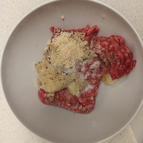 Mix all the ingredients (except the gravy) together. Season to taste. If you want to check if it's seasoned properly, cook a small portion in a pan or microwave for 1 minute and taste. Just a taste, don't eat it all!