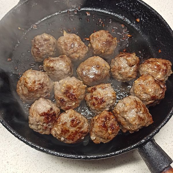 Heat a pan with a little oil and fry the meatballs until cooked through and golden brown.