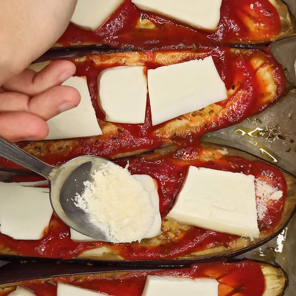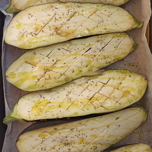 Griglia la melanzana fino a cottura, circa 35 minuti, a 180 gradi Celsius.