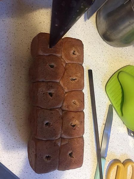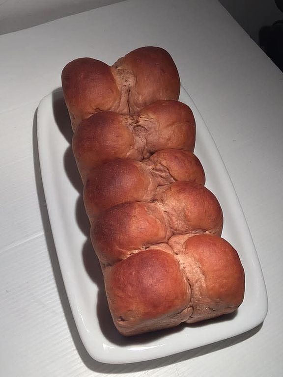 Il pane a fiore al cacao con ripieno di frutta candita è una delizia splendidamente realizzata che unisce un aspetto scenografico a un sapore ricco. Modellato come un fiore in piena fioritura, questo pane soffice e arricchito è aromatizzato con cacao, che dona all’impasto un’intensa tonalità cioccolato e una leggera nota amara che bilancia la dolcezza del ripieno. All’interno di ogni petalo si trova un cucchiaio di frutta candita—come scorza d’arancia, ciliegie o frutta tropicale mista—che aggiunge esplosioni di sapore e colore. Durante la cottura, l’aroma del cacao si mescola con quello della frutta caramellata, creando un profumo irresistibile. La crosta esterna diventa leggermente croccante mentre l’interno rimane soffice e umido. Spesso spolverato con zucchero a velo o leggermente glassato, questo pane è sia festoso che confortante. Ideale da condividere a colazione o all’ora del tè, il pane a fiore al cacao con frutta candita è un connubio delizioso di bellezza, dolcezza e morbidezza in ogni morso.