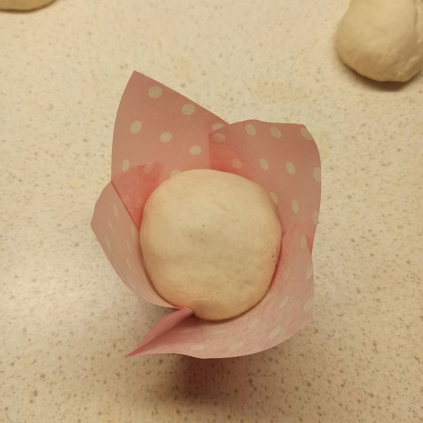 Tạo hình trái banh nhỏ như lòng bàn tay, ấn nhẹ cho trái banh hơi dẹp, cho lên khay có giấy baking