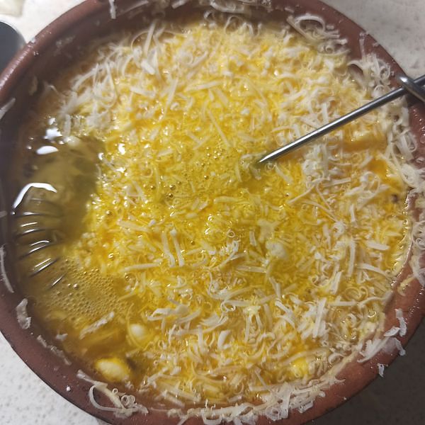 Beat the eggs with salt, pepper, and Parmesan cheese. Keep in mind that Parmesan is slightly salty, so use minimal salt to taste. For accuracy, you can fry a small spoonful on a pan and taste to check if the seasoning is balanced.