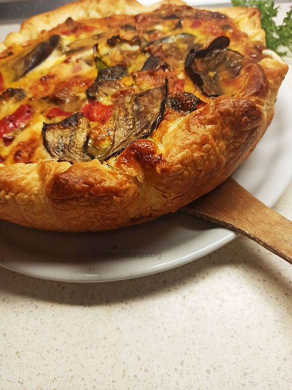 Avoid covering the quiche, as the puff pastry may lose its crispiness.