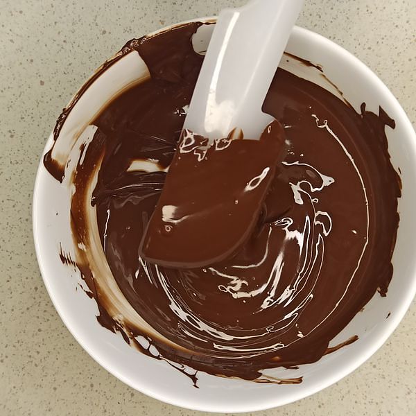 Melt the chocolate using one of two methods: Method 1) Use the microwave, set it to 600W for 40 seconds, then stir. Repeat at 600W for another 40 seconds multiple times to avoid burning the chocolate. Method 2) Use a Bain Marie (double boiler). If using the Bain Marie, be careful not to let water or steam drip into the chocolate.