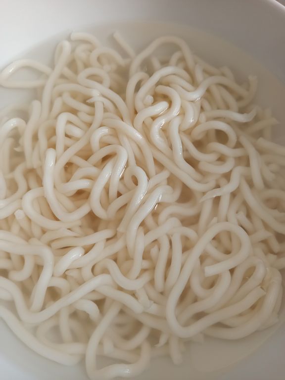 Chần udon qua nước sôi. Mình cho nước sôi vào udon, xới cho nó tơi ra. để 3 phút thì vớt ra rổ cho ráo nước1680795372492.jpg3.39 MB