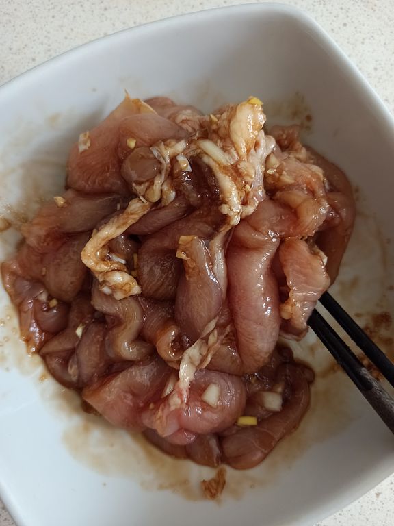 Cho phần hành tỏi băm vào thịt gà. Nêm nước tương, dầu hào, muối, đường. Trộn cho đều để tầm 30 phút1680795372508.jpg3.65 MB