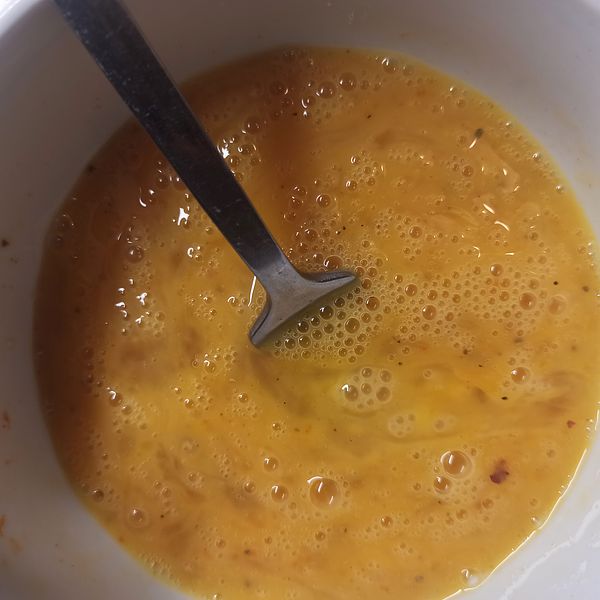 Đánh trứng với muối, tiêu, đường