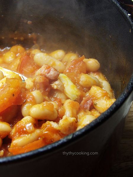 Nói giảm ăn thịt, giảm sát sanh mà khó lắm ai ơi. Ăn chay xứ tây khổ lắm ai ơi. Đặc biệt muốn ăn để ốm bớt. Nói thiệt, ai nhà giào, có người nấu cơm hầu hạ mà vẫn béo thì là học sinh cần cố gắng! 😝Tui đây béo ú na ú nần nhưng thật sự là không có thời gian nấu nướng những món NGON VÀ ÍT CALO. Đói quá, bận quá thì cứ cắm đầu vô bất cứ cái nào ngay trong tầm mắt mà đớp thoai à! huhuhu! Như hôm qua, phải chạy bộ tới chỗ làm, mà nhà không có cái gì ngoài mấy cái cracker, đành thẩy nó vô cặp rồi mang giày, chạy bộ tới chỗ làm, làm hùng hục như 1 con ở rồi ngấu nghiến cái cracker, rồi lại chạy tới chỗ khác họp với bạn đồng nghiệp. Về tới nhà 18h là nói thiệt, hết mie xí quách. chỉ muốn nằm dài ra thở. À, mà còn cái nữa, sau 1 ngày làm như trâu như bò thì bắt tui ăn mấy cái món dở dở ương ương là tui căm nhe! Nên phải ăn ngon. Mà ngon lại nấu nhanh thì thường là mấy món nhiều calo. oạch! Món đậu trắng hầm này có thịt nhưng rất ít, vài cục bacon nhỏ xíu cho có hương có hoa. Công thức tại đây nhe!!